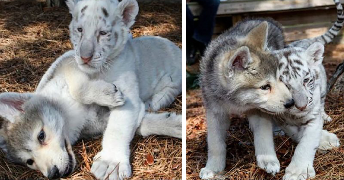 They share a special connection and have the same formula milk. Their ancestors were and are enemies, but the baby wolves and tigers don’t know it. As time goes on, the tigers will become bigger than the wolves, because they grow faster.