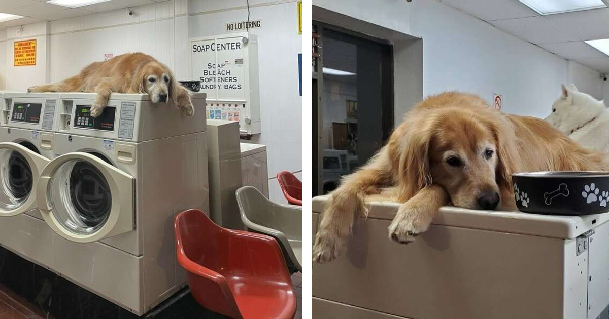 If you ever visit the Laundry on Larkin Street you will be greeted by an 8-year-old golden retriever that closes the laundromat with his dad every single day.