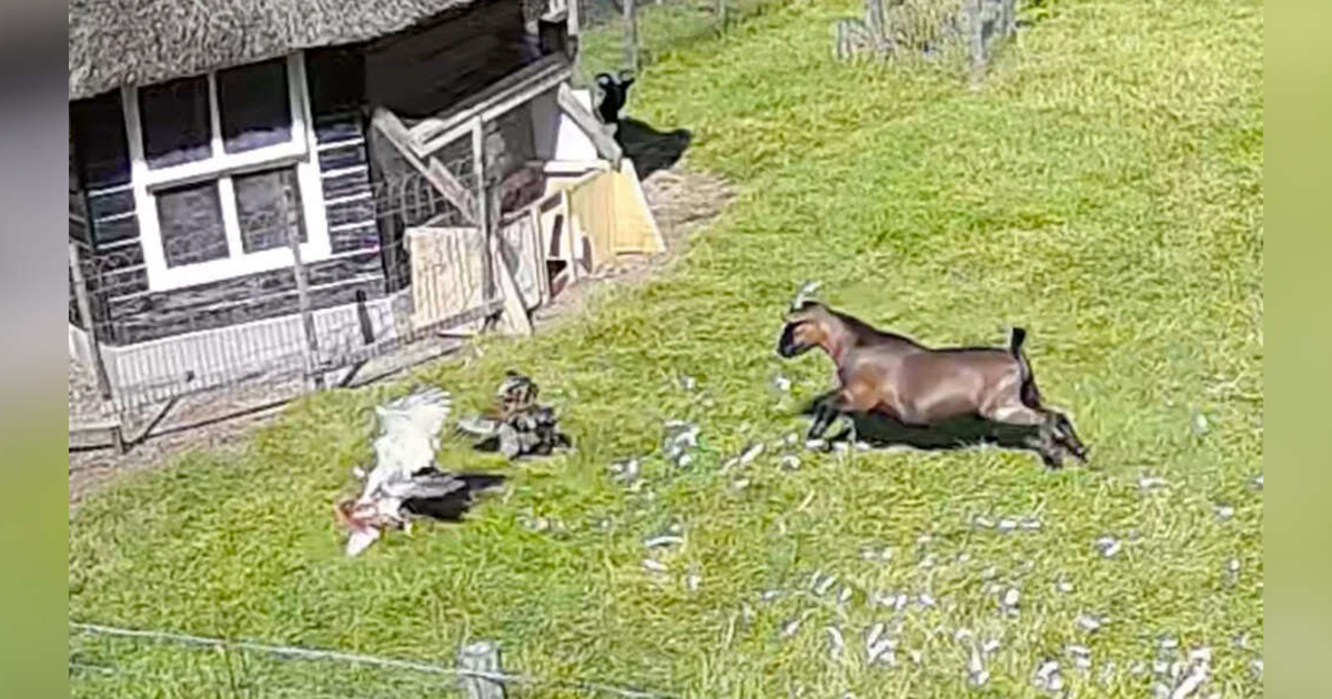 As soon as the hawk started his attack, the hen’s friends- goats and roosters, lost no time to protect her.