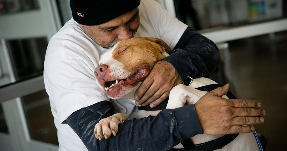 Lewis Jimenez adopted pit bull Titus from a shelter. The man fell in love