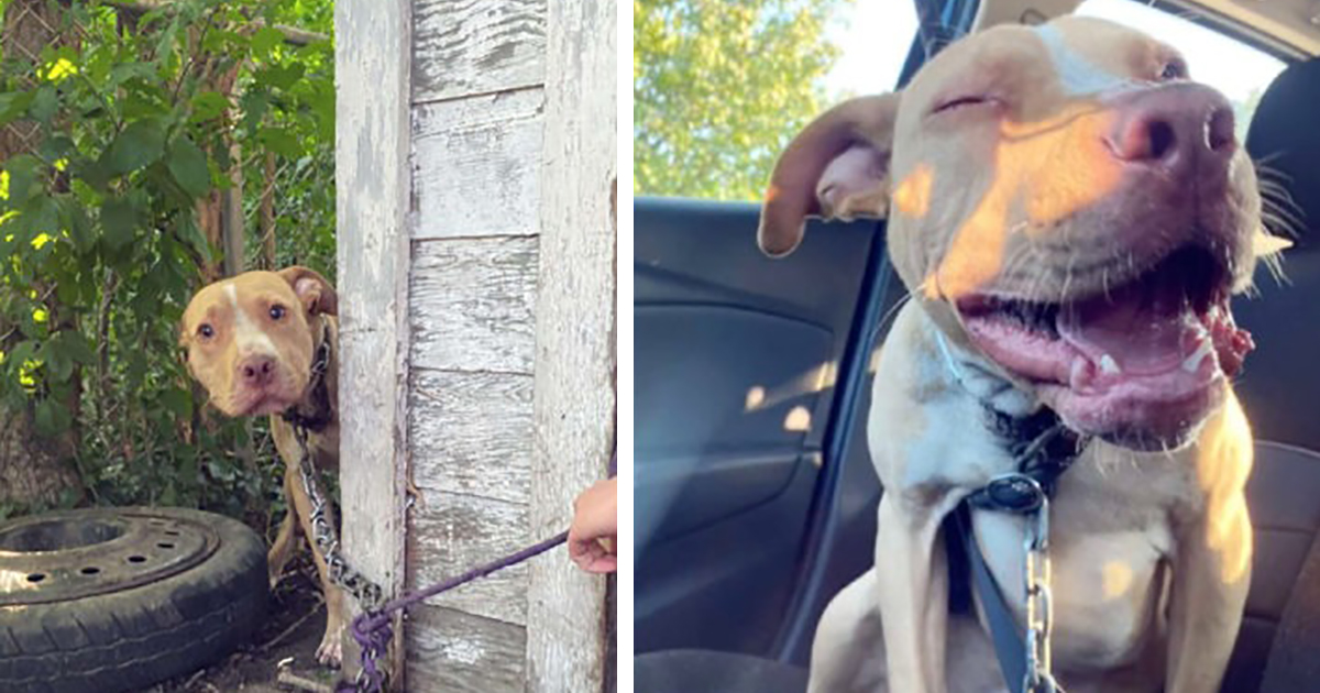 A half-breed pit bull was chained up in the backyard of a house for