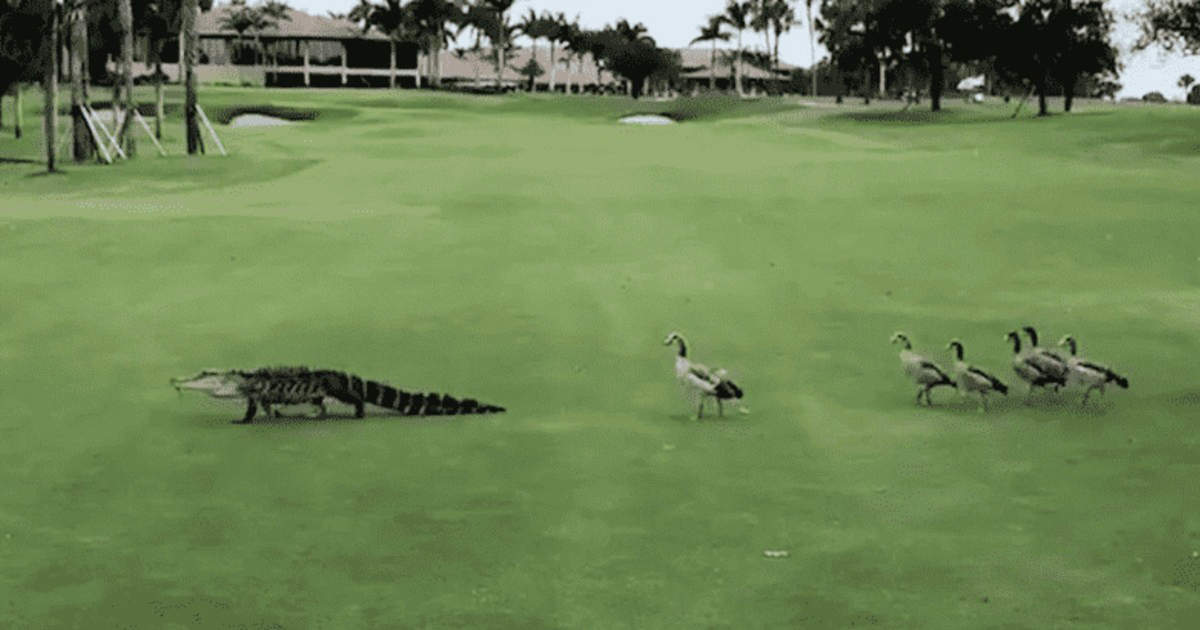 In this Florida-based video, a gator is being chased down a golf course by